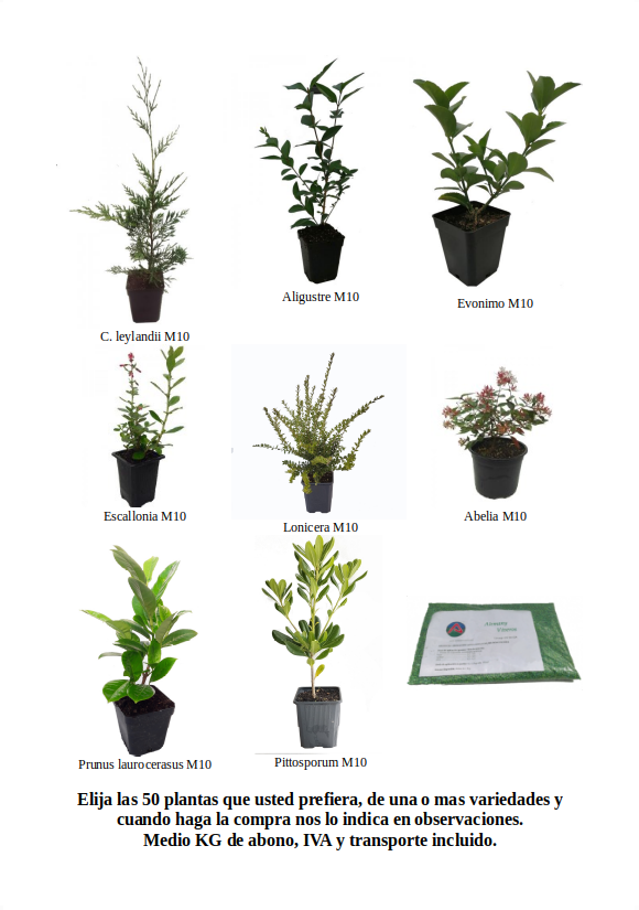 PACK 50 PLANTAS DE SETO 50 Cm + 1/2 Kg de abono