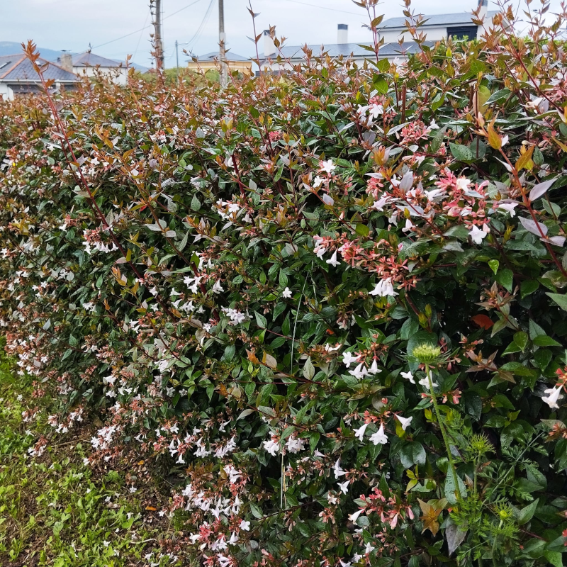 -Abelia grandiflora:Apresentam-se em vasos de 9x9x9,5 cm, permitindo o transplante para um vaso maior ou o cultivo direto no campo. Este arbusto pode atingir um metro de altura, com folhas perenes, completamente verdes e avermelhadas. É uma planta rara devido ao seu período de floração excepcionalmente longo, da primavera ao início do outono. Produz uma flor branco-rosada, levemente aromática.