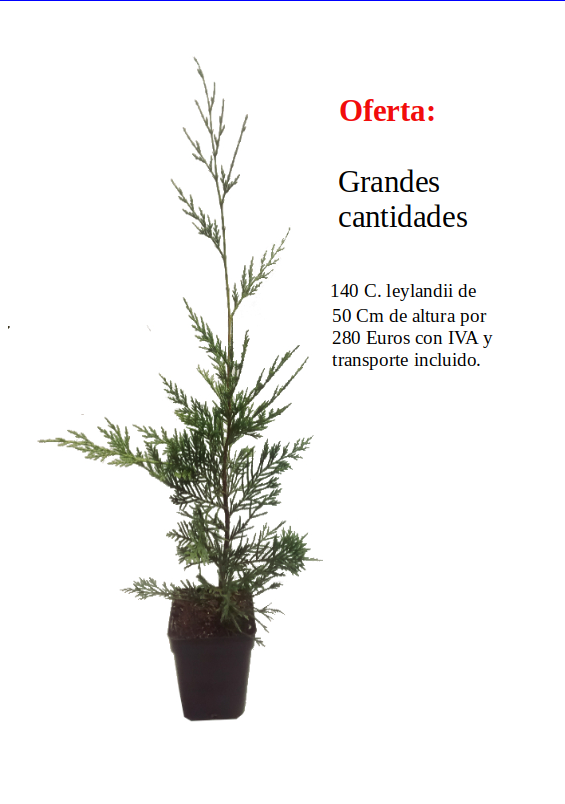 A oferta inclui 140 Leylandii de 50 cm (medidos sem o vaso) por 280 euros, incluindo IVA e frete. O preço é de dois euros cada.