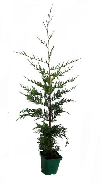 Árvore colunar de crescimento rápido, com folhagem verde-escura, usada principalmente em sebes e quebra-ventos, com distância de separação recomendada de 70 centímetros entre plantas (14 plantas por 10 metros lineares de sebe).